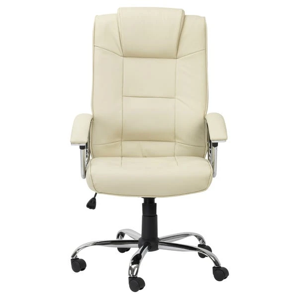 Featuring a beautifully designed leather back and seat perfectly complimented by a chrome feet and armrests, the Houston is a modern executive chair that would look ideal with any décor. The generous padding on the back and arms offers sumptuous comfort, whilst the padded headrest provides additional neck and back support. This self-assembly chair is available in a choice of black and cream colourways and features traditional tilt mechanism with tension control and height adjustment, making it the perfect addition to any home office space.