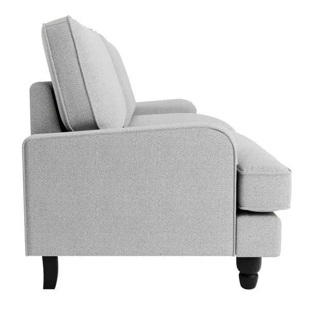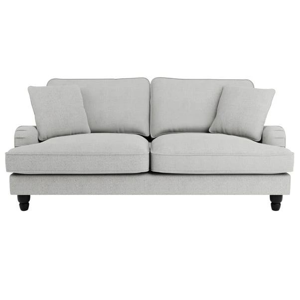 Offering a modern take on a vintage style, the Beatrice sofa bed would make a magnificent addition to any home upholstered in a stunning light grey boucle fabric that’s soft to the touch. Complete with a pleated arm design, piped edge detailing and contrasting black painted, turned rubberwood legs, this sofa offers a stunning design that would bring a touch of sophistication and elegance to any room. As well as being undoubtedly stylish, the Beatrice is comfortable too, offering foam and fibre filled seats and a webbed and sprung base to provide optimal support, as well as plush fibre-filled back cushions and two matching scatter cushions.