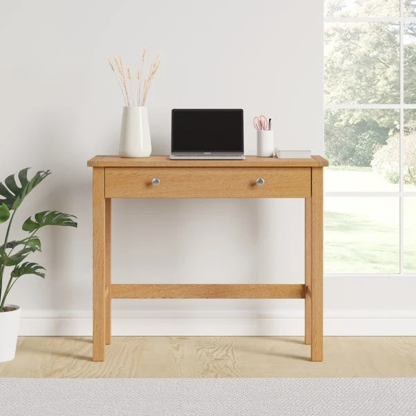 With minimal assembly required, the part assembly Bromley desk features a compact design, perfect for any space as well as a generous worktop and a spacious drawer, perfect for keeping all your office supplies.