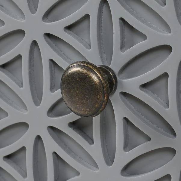Characterised by the stunning carved design on the drawer fronts, the Carys range is perfect for adding a classy touch to your bedroom. This beautiful collection also boasts a clean, grey painted finish, complete with distressed brass look handles.