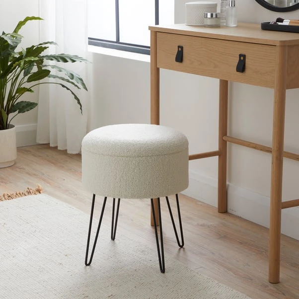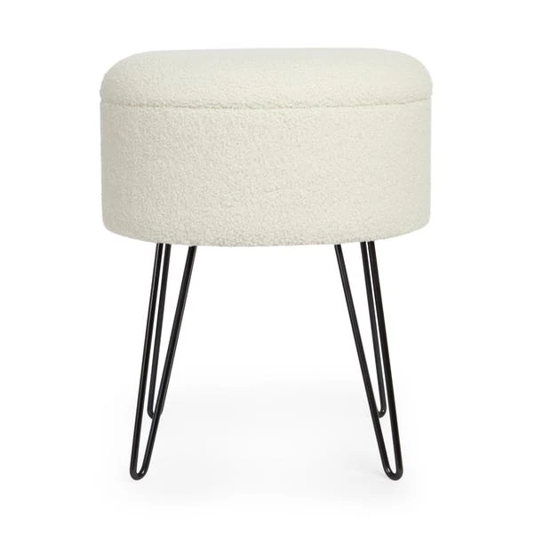 If you’re a fan of the modern aesthetic, this Sherpa Footstool is right up your alley. The sherpa upholstery has a soft touch feel and matches any colour scheme while the black metal hairpin legs are both sturdy and trendy. The lid can be flipped over to use as a table in a pinch, so you can use as a table for drinks, snacks and much more!