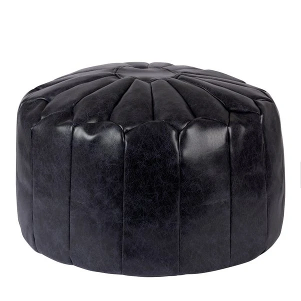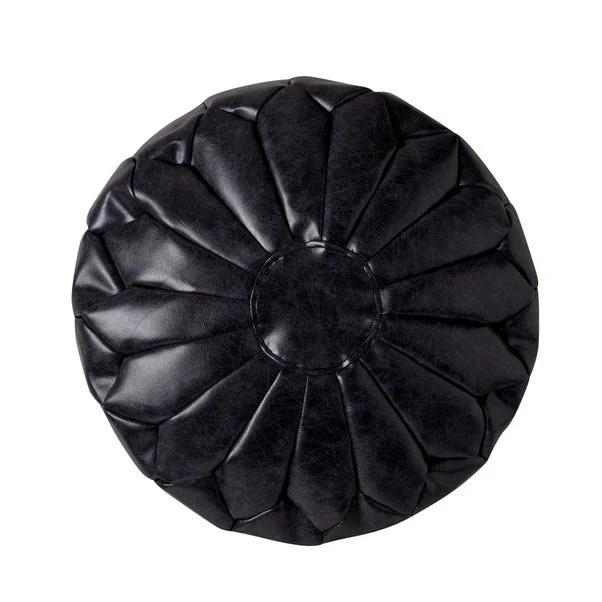 Boasting a Moroccan inspired design, this round pouffe is crafted with stitched faux leather panels in a black colourway to suit your style and complement an array of home decors. Other colours are also available, to cater to any home.