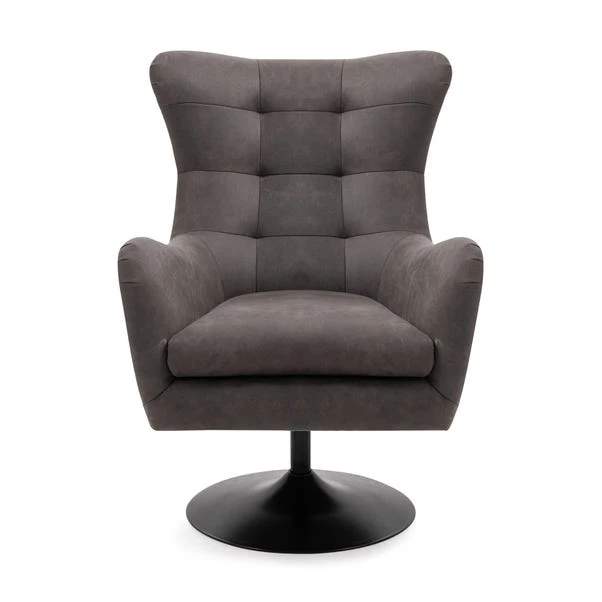 Upholstered in a soft touch microsuede fabric finished in a choice of colours, the Roan Swivel chair offers a modern, industrial styling that will enhance any modern living space. This stunning chair features a full 360 degree swivel function and foam and pocket sprung seats to provide unbeatable comfort. Complete with a sturdy black metal base and a stylish tufted backrest, this executive styled chair is sure to make a bold statement in any home.