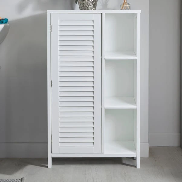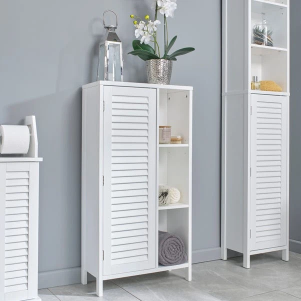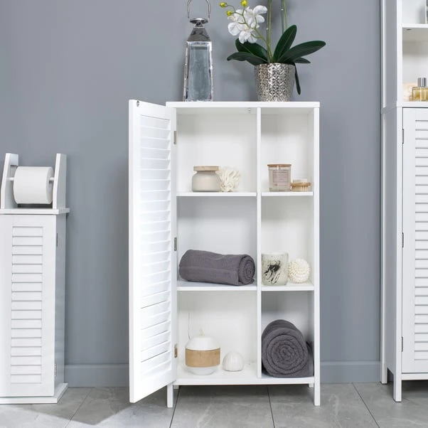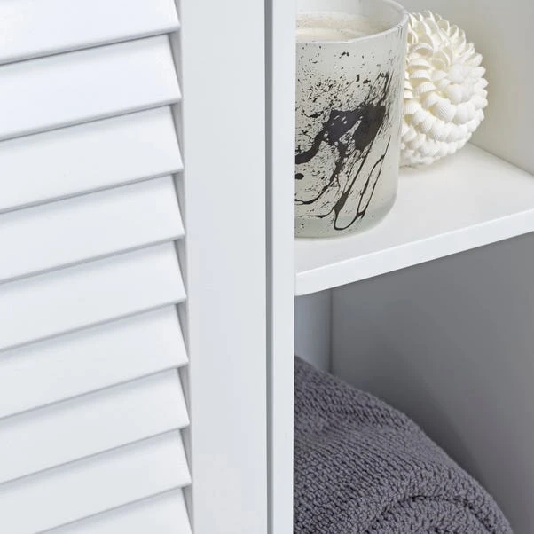 The perfect console unit for your bathroom, the Tuscany features a modern and handle less slatted door design with multiple shelves. It is easy to assemble and boasts ample storage space to tidy away clutter, keeping your bathroom neat and organised. This white console unit is an ideal bathroom storage solution that will add a touch of style to your space.