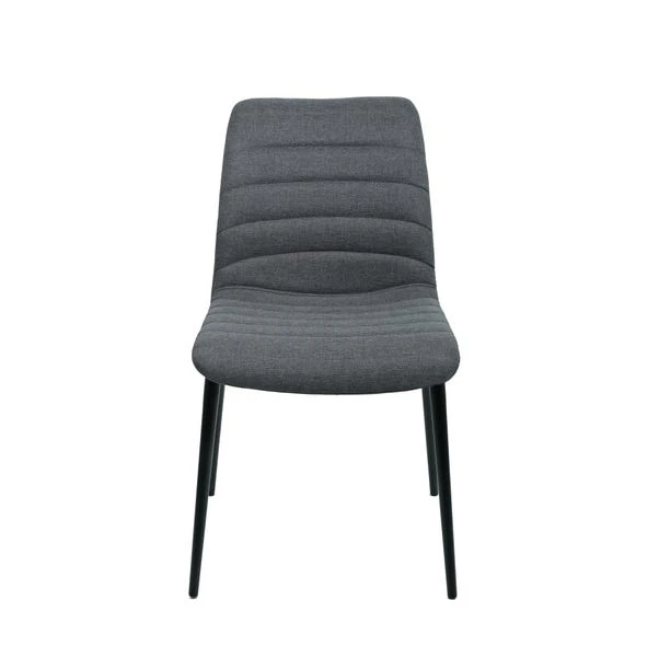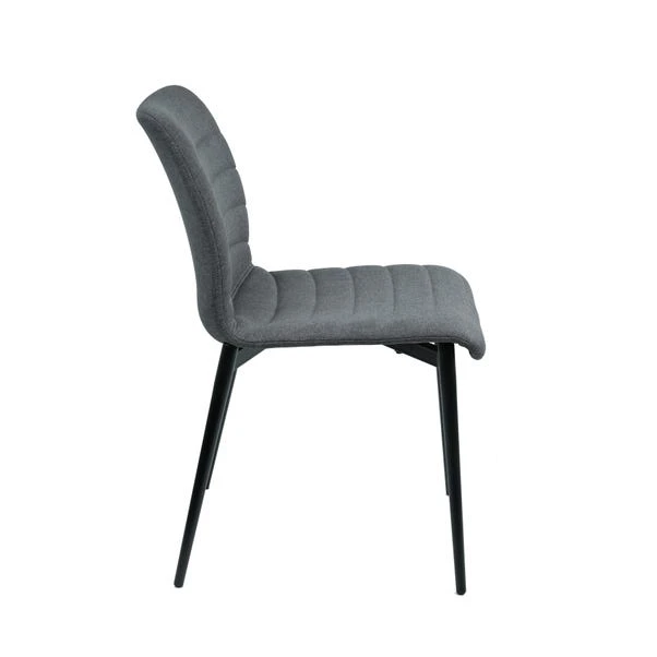 Featuring a modern design, this stylish dining chair features sturdy powder coated black metal legs paired with a stunning curved back seat. Upholstered in a stylish fabric upholstery and complete with gorgeous vertical ribbed stitch detailing. This dining chair feature deep foam padded seats for maximum comfort and support, perfect for any kitchen dining space.