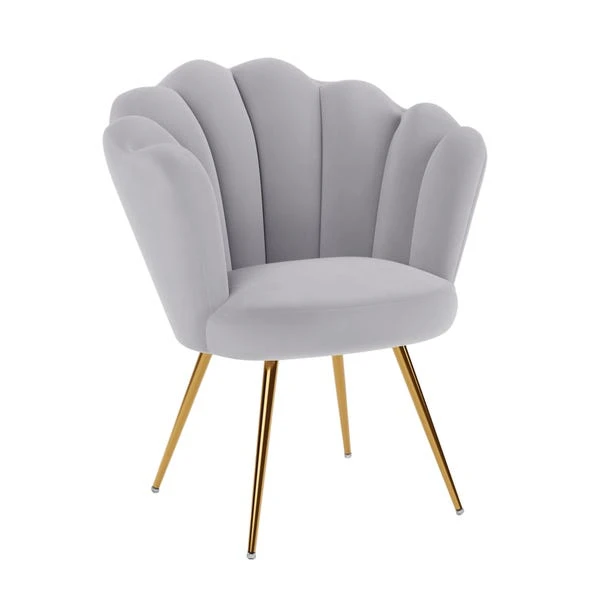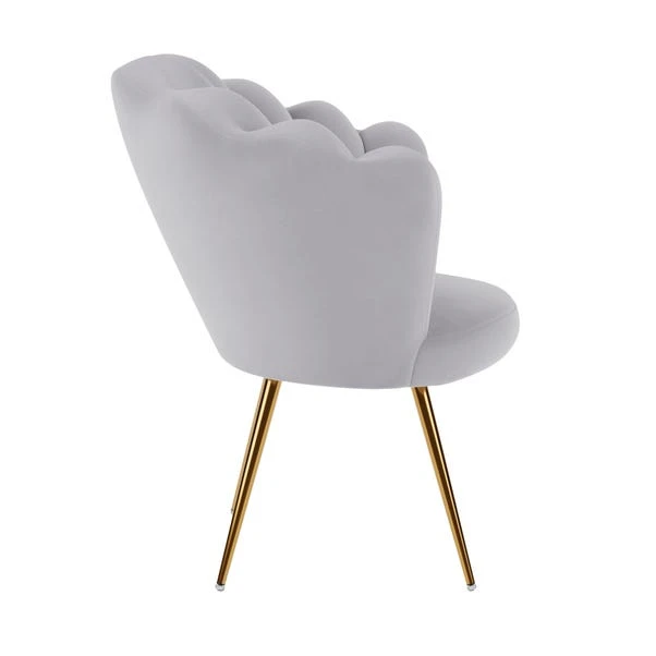 With its curved silhouette complete with a scalloped, shell back design, the Vivian cocktail chair offers a glamorous, art deco inspired design and would be the perfect statement piece for your home. This part assembly chair features a foam-filled seat and backrest to provide luxurious comfort and comes complete with stunning gold-coloured metal legs. This elegant cocktail chair is upholstered in a smooth velvet fabric and finished in a choice of stunning colourways.