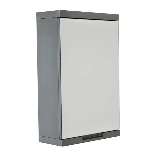 Complete with a grey, high gloss finish this simple bathroom cabinet features a hinged door with a large mirror and 3 internal shelves for additional storage space.