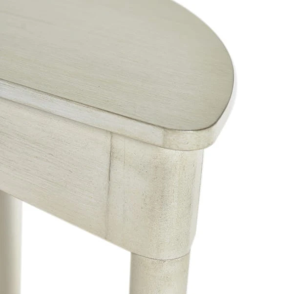 Open up your hallway with this classic console table with a half moon shape. You will have a small amount of extra surface space, so use it for your essentials or just a touch of decor, the choice is yours! Made for the long run, this console table will last you for a long time.