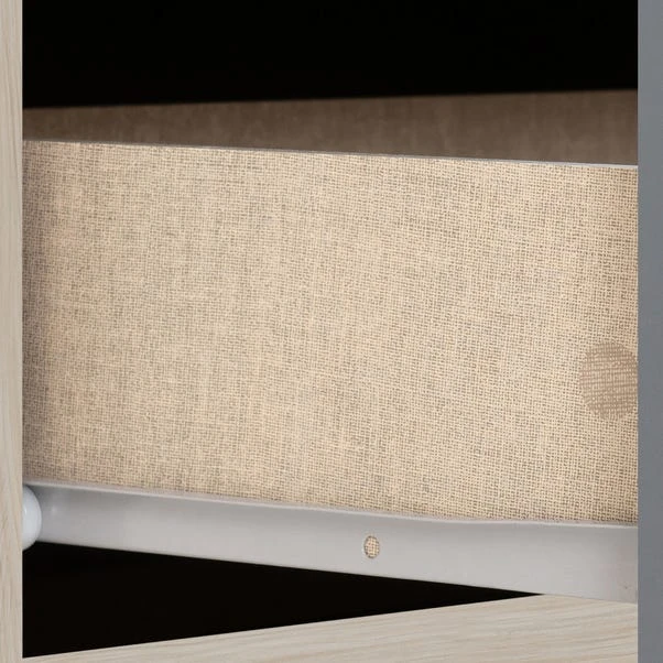 The Nevada 5 Drawer Compact Wardrobe features a contemporary design owing to the gloss finished front which contrasts perfectly with the light oak veneers. The Nevada has your storage needs covered thanks to the five drawers and hanging space from the metal rail.